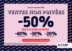 Du 17/12/2025 au 06/01/2026, jusqu’à -50% de remise sur une large sélection d’articles* en magasin KIABI et en ligne 😍 J’en profite